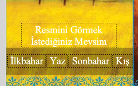 daha sonra mevsimler arasında geçiş işlemi için ilk resmin üzerine 4 adet text ekleyip mevsim isimlerini yazıyor ve hepsini F8′e basıp buton yapıyoruz.